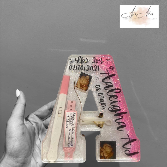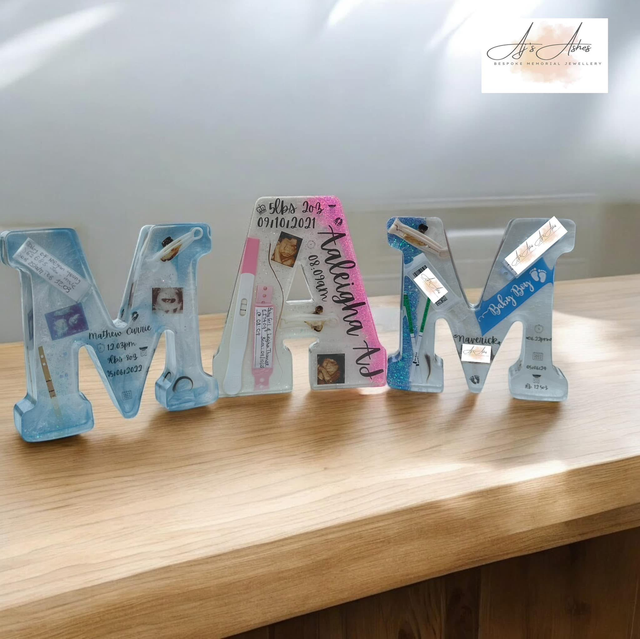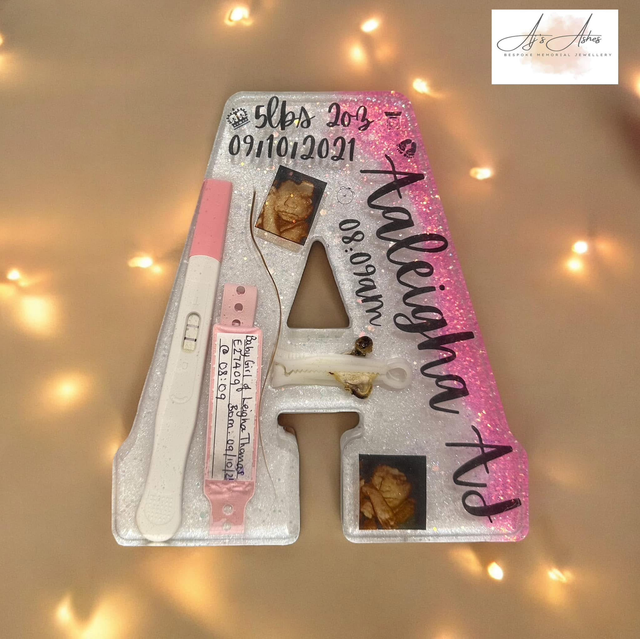 Celebrate your little one’s most precious first moments with our stunning resin alphabet keepsakes, available in letters A–Z. Each piece can be lovingly filled with those treasured items that mean the world — from tiny hospital bands and first scans, to locks of hair, footprints, or even their very first outfit details.