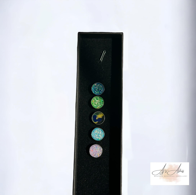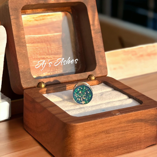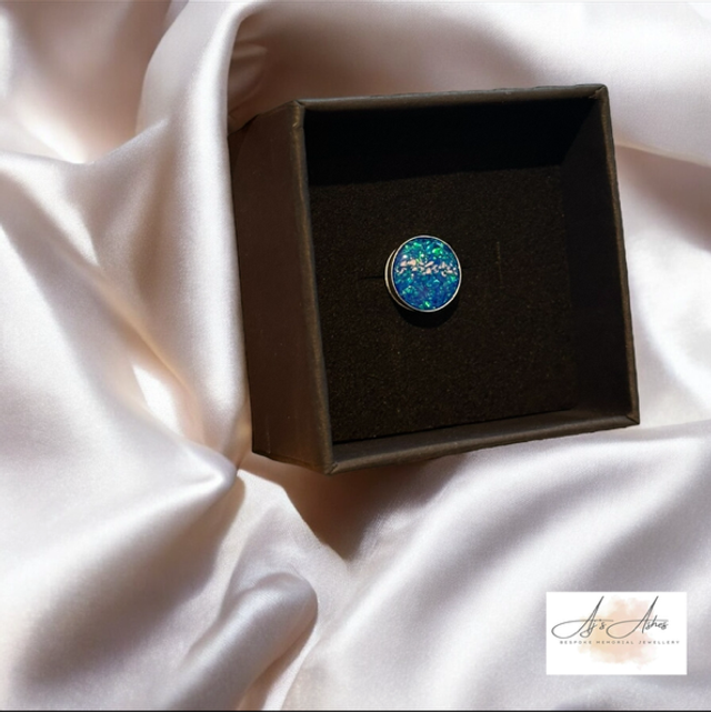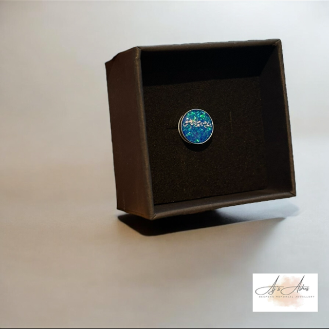 A simple yet meaningful keepsake, our Circle Pin Badge is carefully handcrafted to hold the memory of your loved one close. The round setting is filled with resin delicately infused with ashes, creating a unique stone-like finish with a beautiful depth of colour and shimmer.