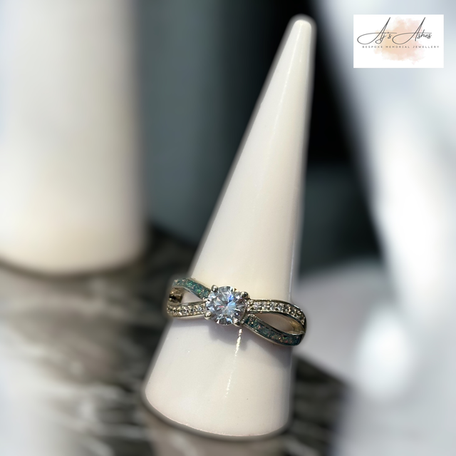 This elegant sterling silver ring features a sparkling cubic zirconia solitaire at its centre, framed by a graceful infinity band design. Symbolising endless love and connection, it’s a timeless piece that combines classic beauty with modern style. A customer favourite, perfect for everyday wear or as a meaningful gift.