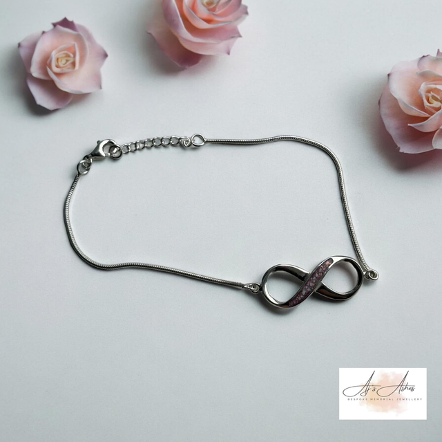 A symbol of forever love and endless connection, our infinity bracelet is a beautiful reminder that some bonds never fade. Crafted in a sleek sterling silver finish, the infinity symbol is delicately accented with sparkling detail, adding just the right touch of elegance. Whether worn as a tribute to a loved one or as a daily reminder of life’s most precious connections, this bracelet is as meaningful as it is timeless. Adjustable for comfort, it’s a piece designed to be cherished every day. (Adjustable sizing)