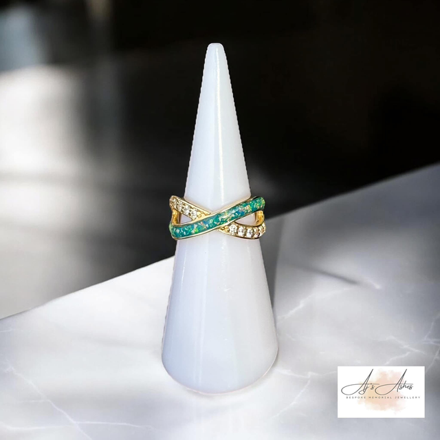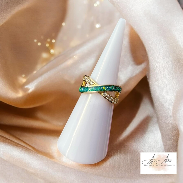 A stunning 9ct gold infinity ring featuring a vibrant opal inlay, beautifully accented with sparkling CZ stones. Fully Hallmarked by the Edinburgh Assay Office for guaranteed quality.