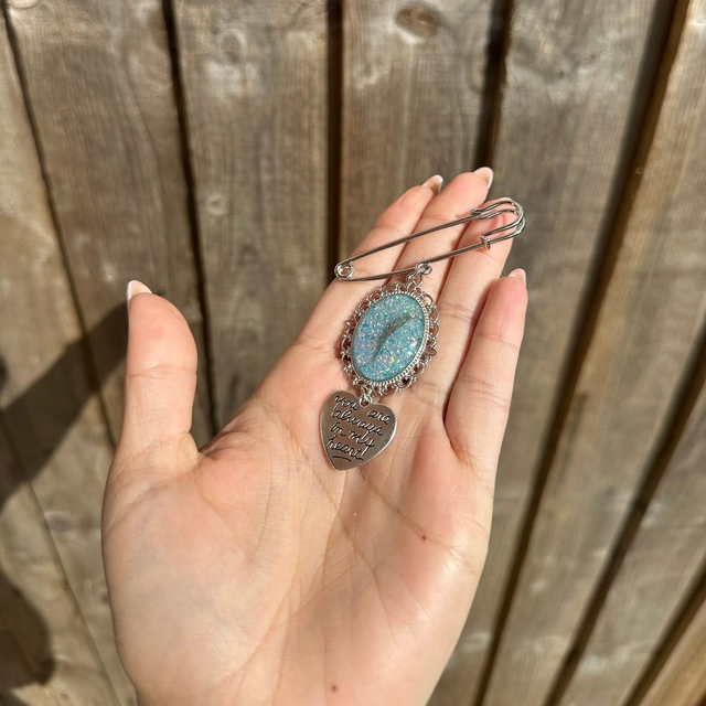 Carry the presence of a loved one with you as you walk down the aisle. This bouquet charm can hold a treasured keepsake — such as ashes or a small piece of fabric from a cherished item of clothing, allowing you to feel their love beside you on your special day. A deeply personal and touching way to honour their memory, creating a keepsake you will treasure forever.